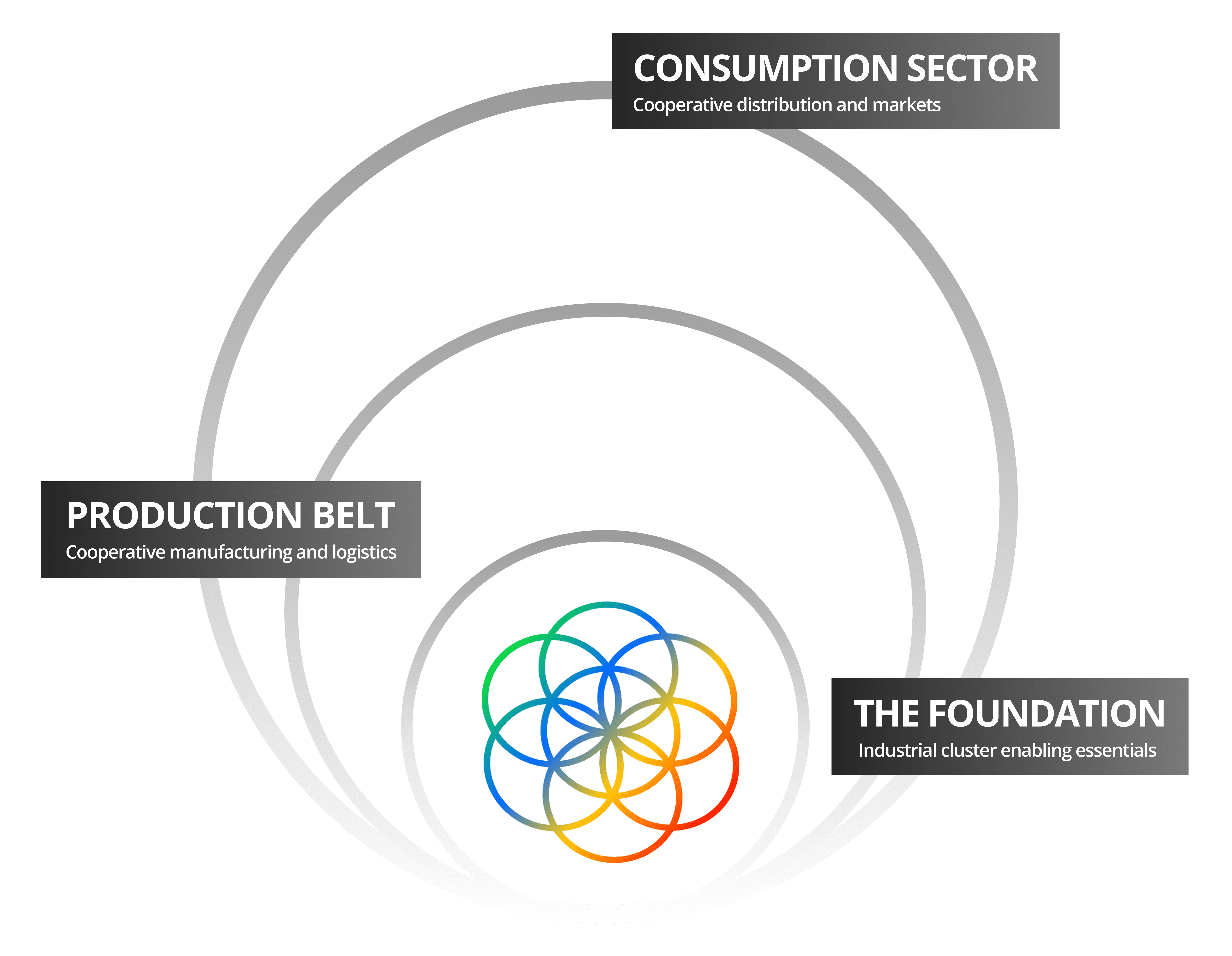 By creating an internal medium of exchange, the system generates a self-reinforcing economic cycle. Income earned within the ecosystem is spent within the ecosystem - compounding value at every transaction and ensuring that prosperity circulates rather than leaking out.